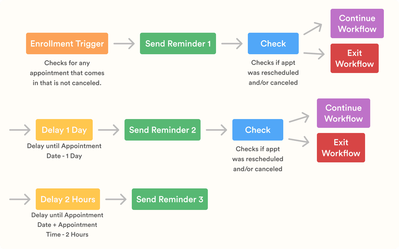 Once the data was in place, I worked with our marketing managers to design a multi-touch reminder workflow in HubSpot: