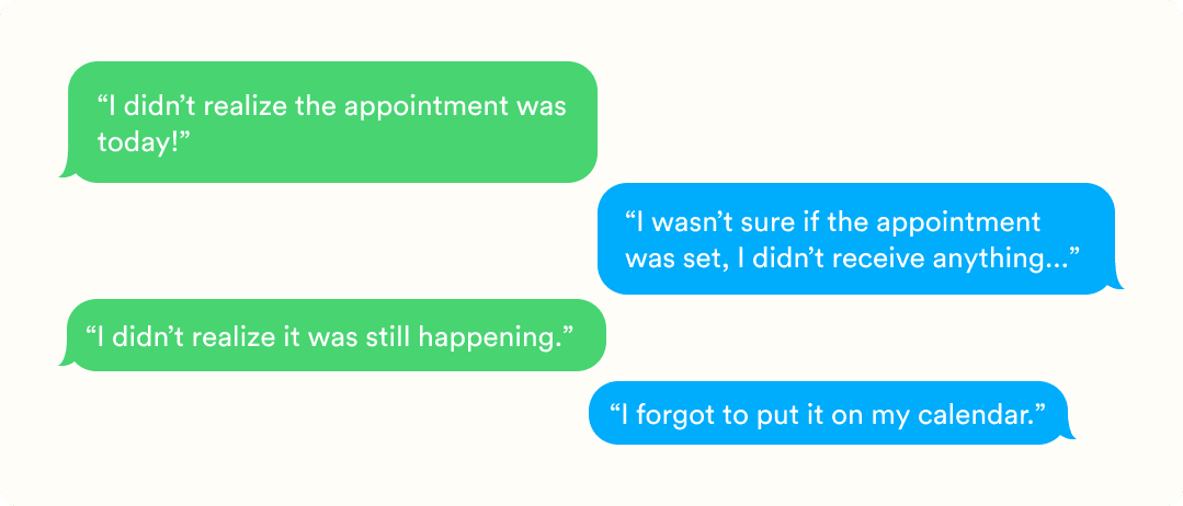 That gap made me think about my own experiences as a customer. I recently went to the dentist and received multiple confirmation and reminder messages in the days leading up to my appointment. Without those reminders, I likely would have forgotten entirely.