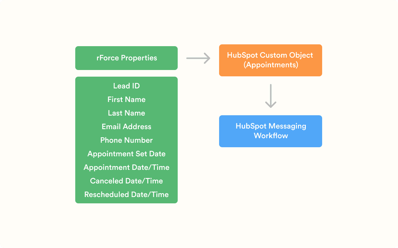The first challenge was data. Direct Salesforce to HubSpot integration wasn’t allowed, so I designed an import structure that allowed appointment data to be reliably brought into HubSpot using custom objects and deals. I built reports to validate each import and ensure customer information, appointment status, timing, and cancellations were accurately brought in and reflected.